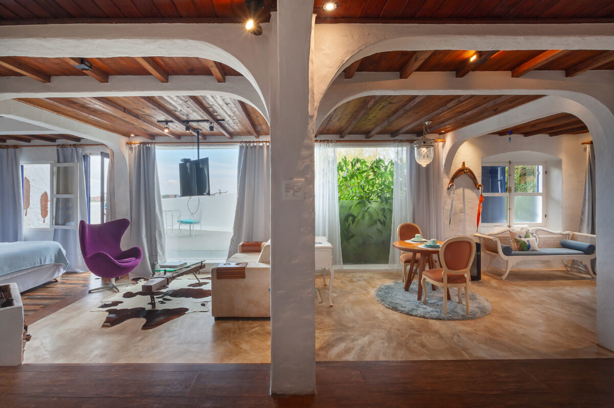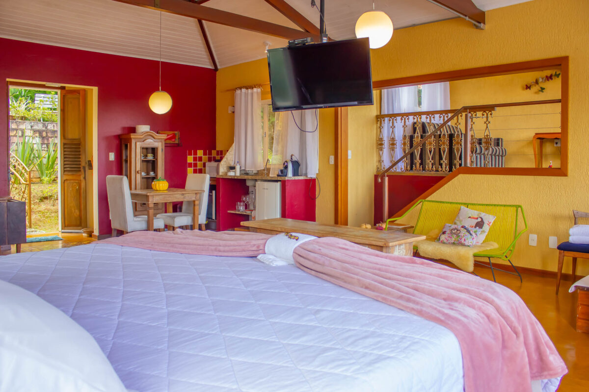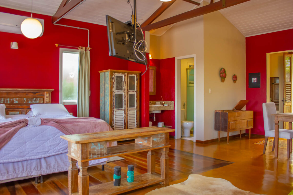 O tema deste Loft é a Espanha e sua localização privilegiada no ponto mais elevado da Pousada com vista aberta para todas as direções. Moveis …