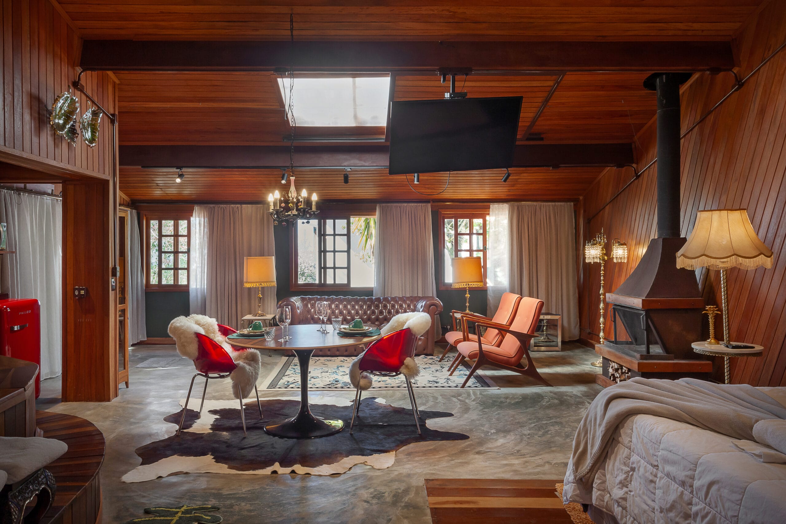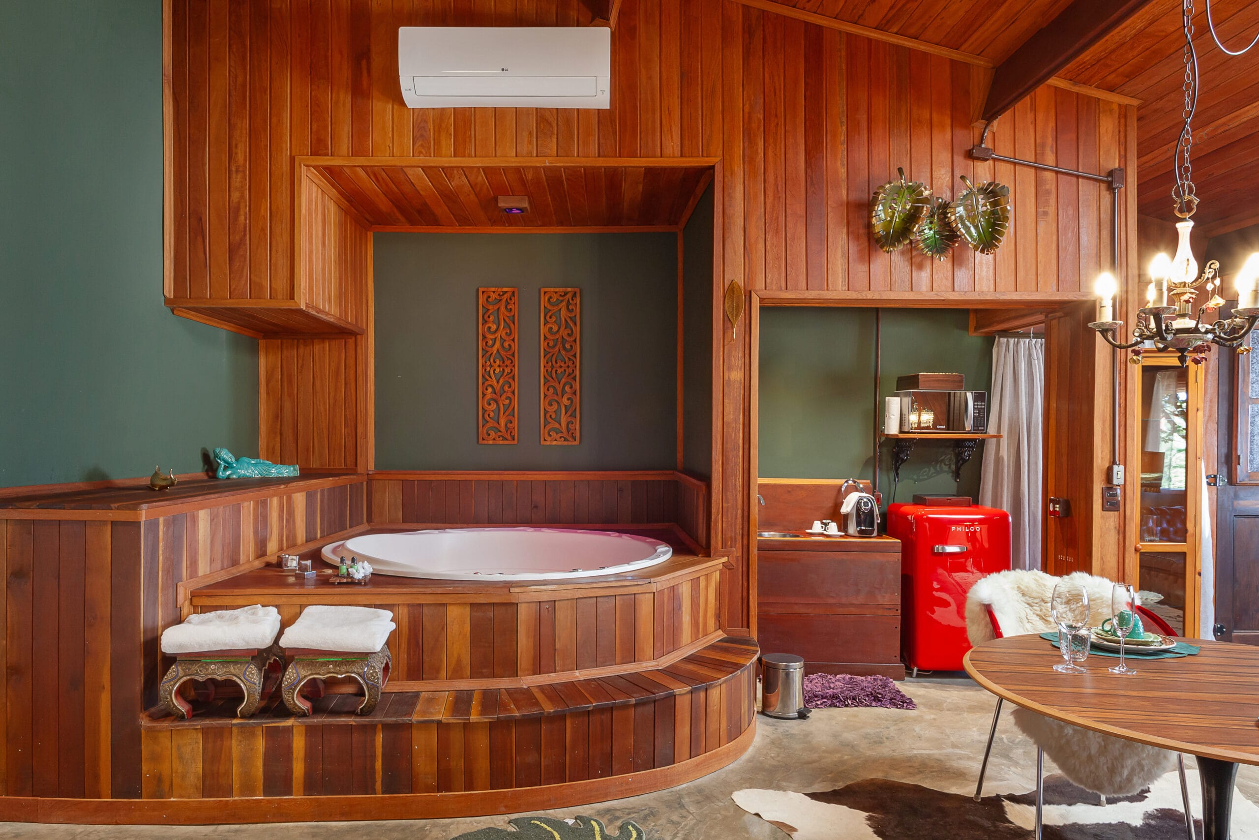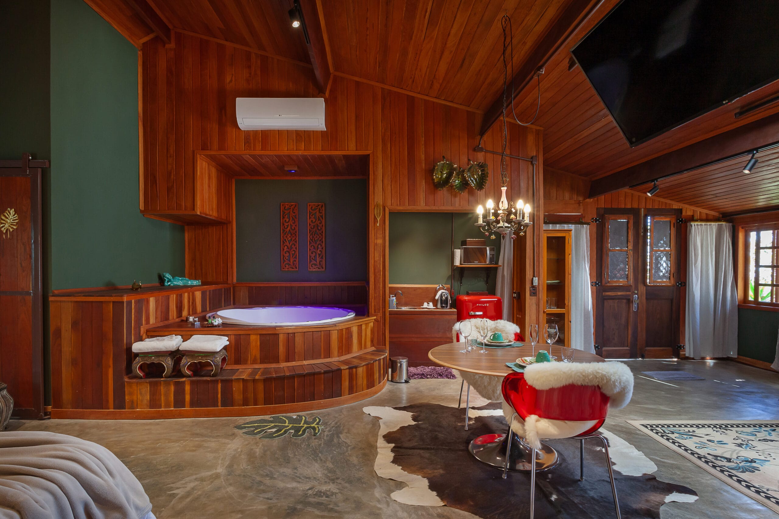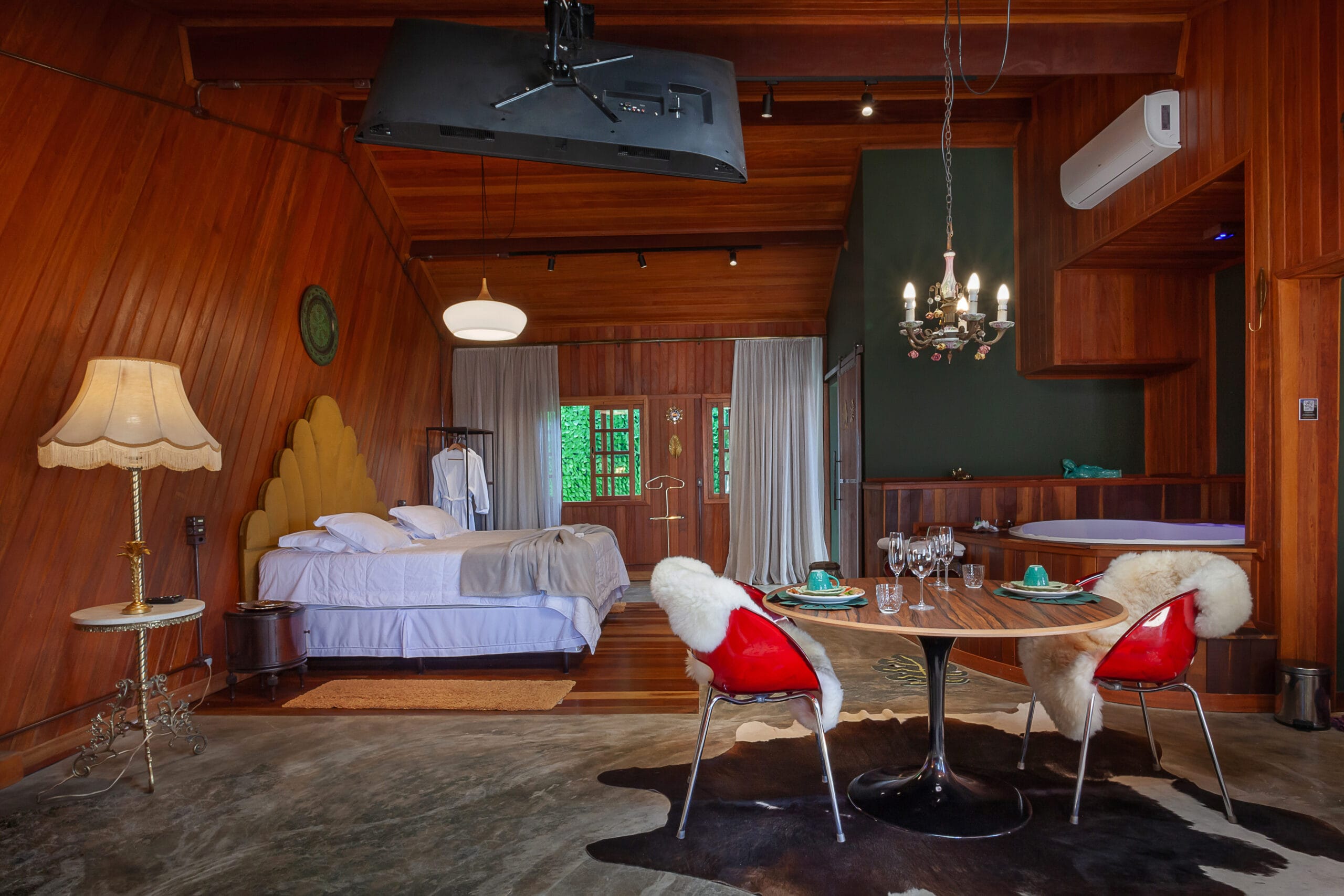 O tema deste Loft é a Espanha e sua localização privilegiada no ponto mais elevado da Pousada com vista aberta para todas as direções. Moveis …